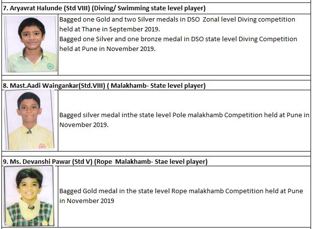 English Primary S.S.C Mast. Chinmay Dukhande (Std. 3rd Div B) has won 1st prize in State level Gymnastics competition held at Jodhpur on 23rd to 27th Dec. 2019. A big congrats to Chinmay. For more details, Click here...