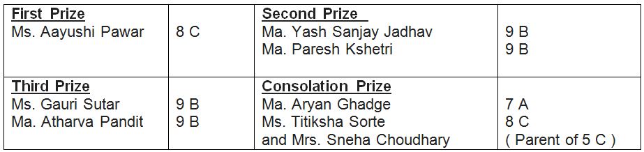 Chinmaya Mission Bhagwadgeeta Shloka Chanting online competition held in Dec 2020. Madhavrao Bhagwat High School (Eng. Med) has been awarded as the "Best School" for Enthusiastic participation. Many students bagged prizes. For more details, Click here...