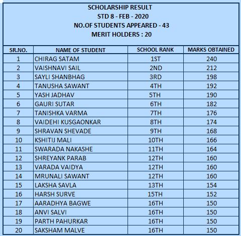 CONGRATULATIONS to Shri Madhavrao Bhagwat High School English Med. as 42 Students got scholarship. For more details, Click here...