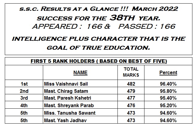 37th years of 100% result of Shri Madhavrao Bhagwat High School (English Medium). For more details, Click here...